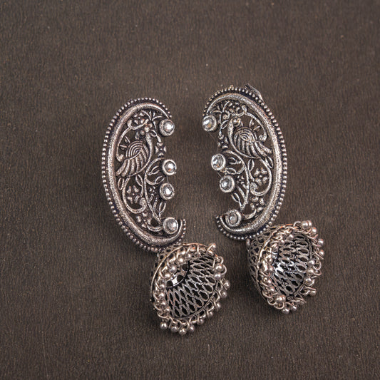 Moon-lit Mayur Jhumki earrings (White)