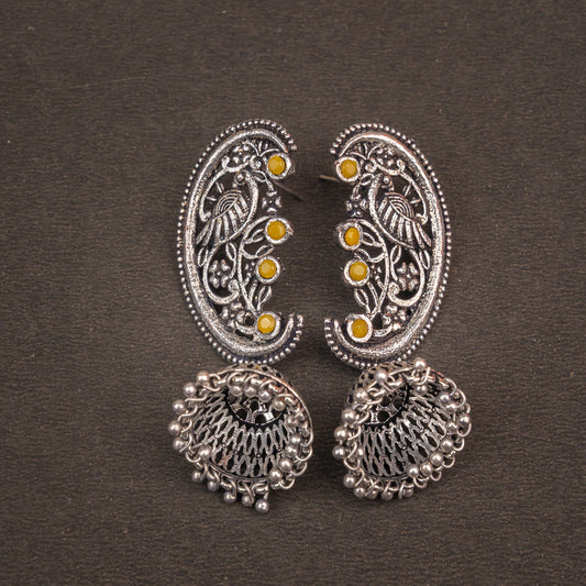 Moon-lit Mayur Jhumki earrings (Yellow)