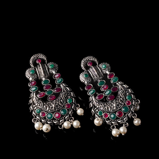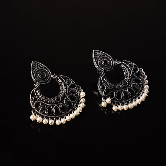 Charming Chaandbali pearl stud earrings (Black)