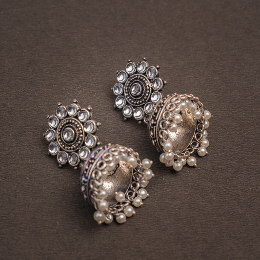 Phoolon ki baali pearl jhumki earrings (White)