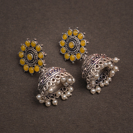 Phoolon ki baali pearl jhumki earrings (Yellow)