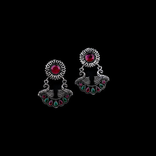 Peacock glow stone studded dangler earrings (Multicolored)