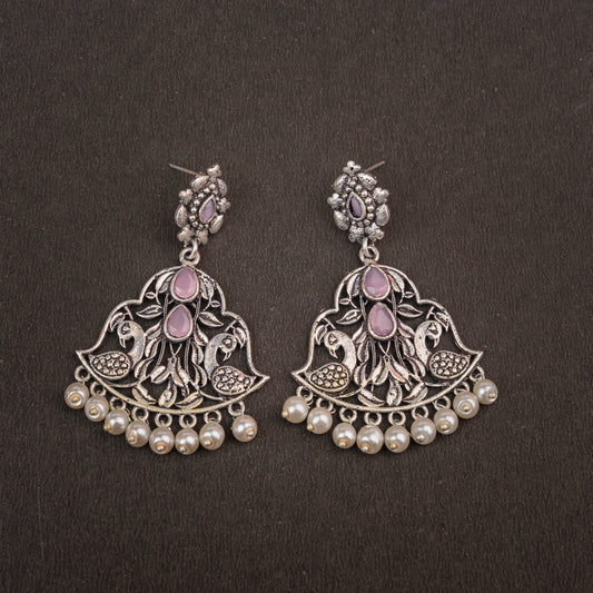 Pretty Peacock stone studded jhumka earring (Baby Pink)