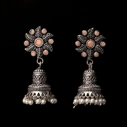 floral charm traditional jhumka earrings (White)