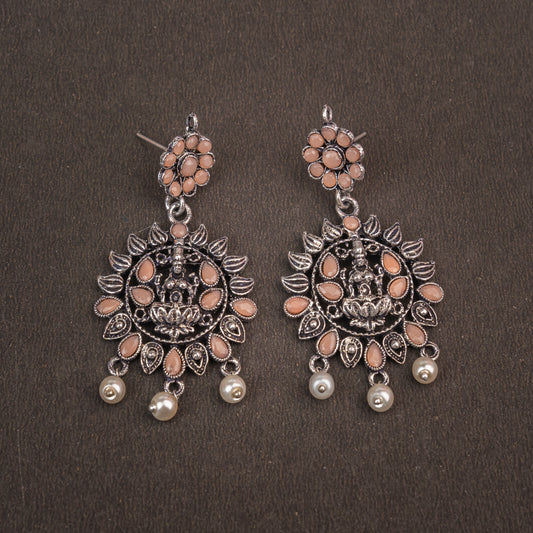 Petal Frame hanging Jhumki Earrings (Baby Pink)