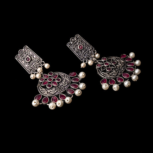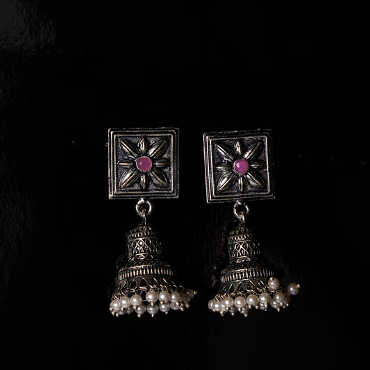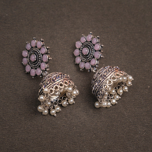 Phoolon ki baali pearl jhumki earrings (Baby Pink)