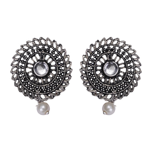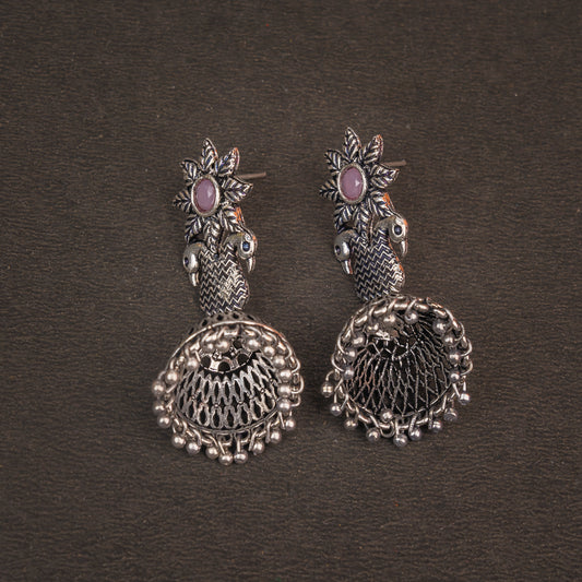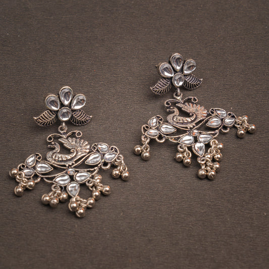 Pretty Peacock stone studded jhumka earring (White)