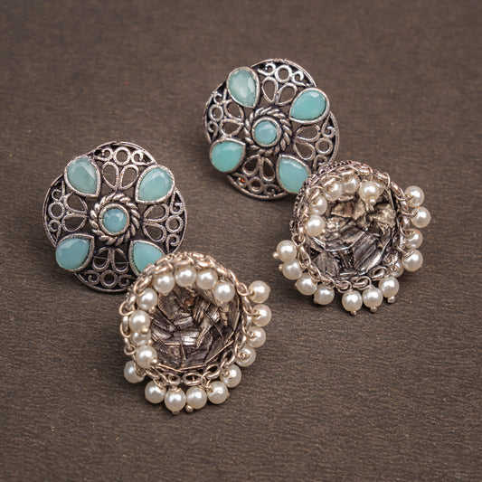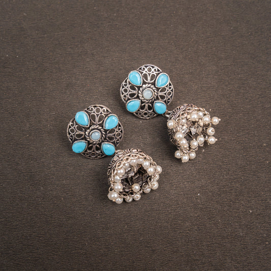 Slays and rays jhumki earrings (Sky Blue)