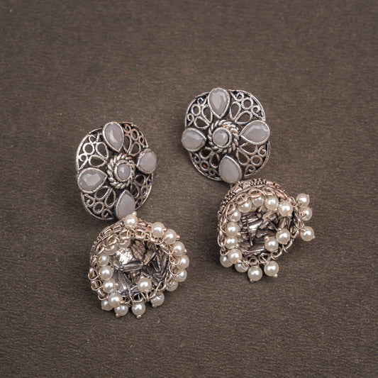 Rain Drop Rani Hanging Jhumki Earrings (Grey)