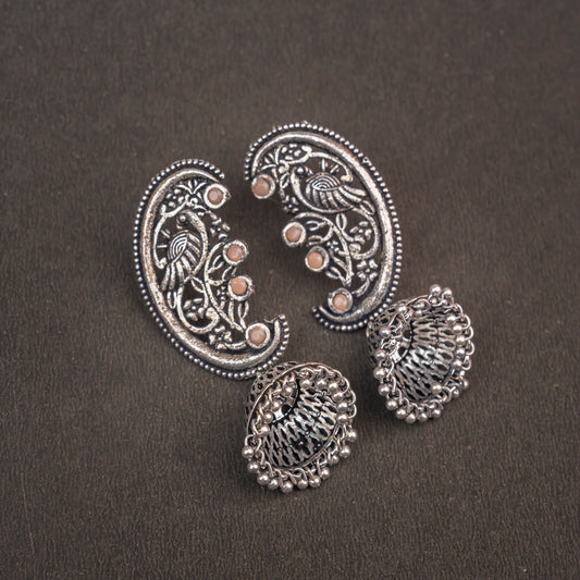 Curv & Swirl jhumka earring (Grey)