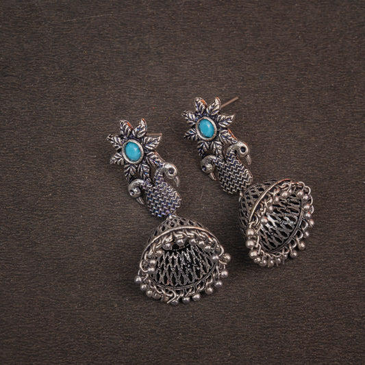 Fearless feathers jhumki earrings (Sky Blue)