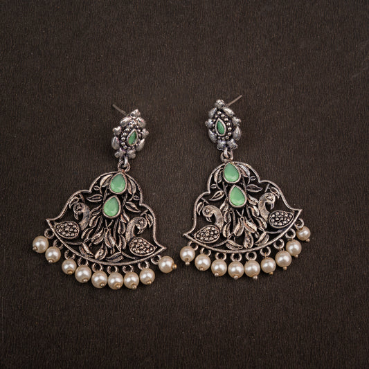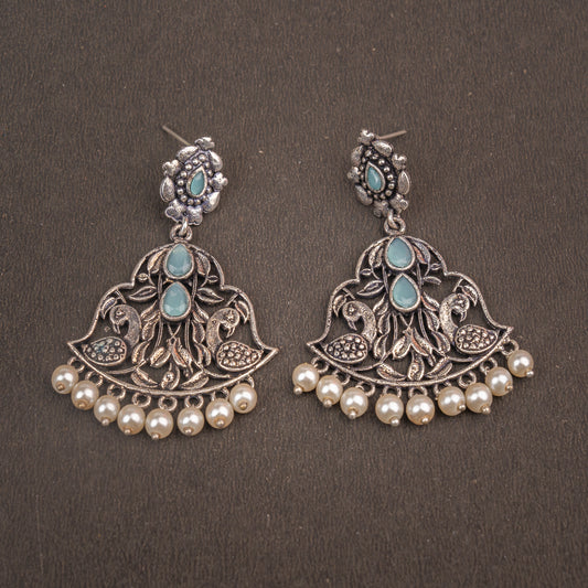 Peacock glow stone studded dangler earrings (Multicolored)