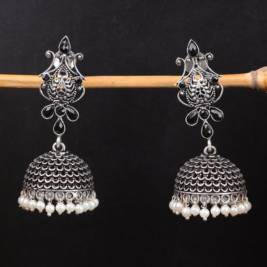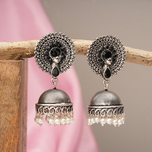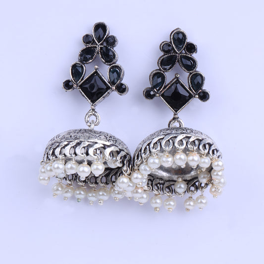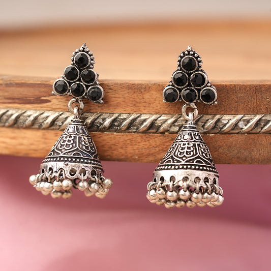 Royal Triple Bell Layered Jhumka Earring (Black)