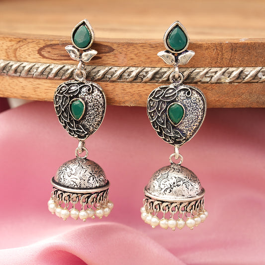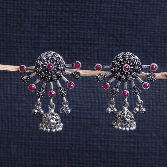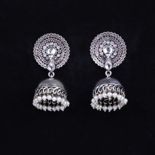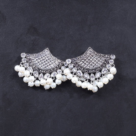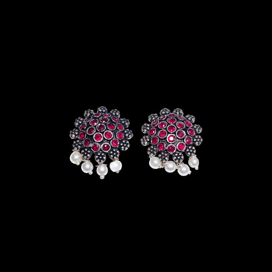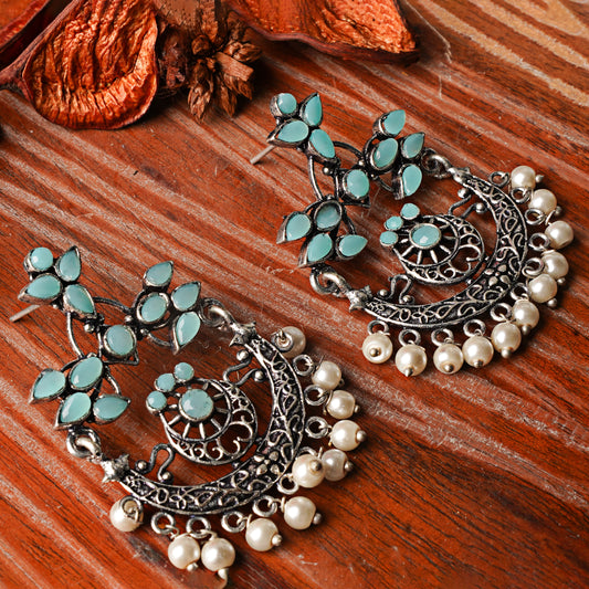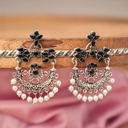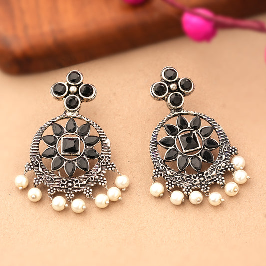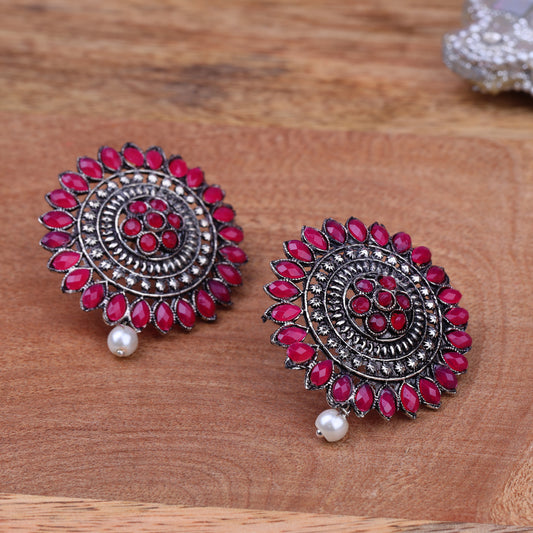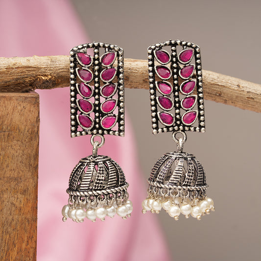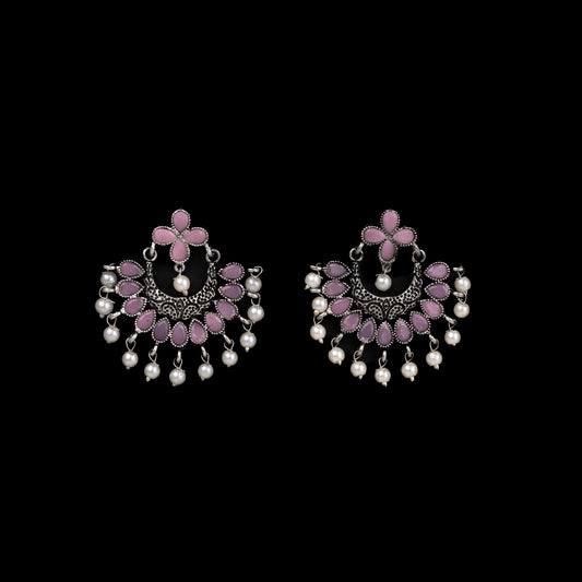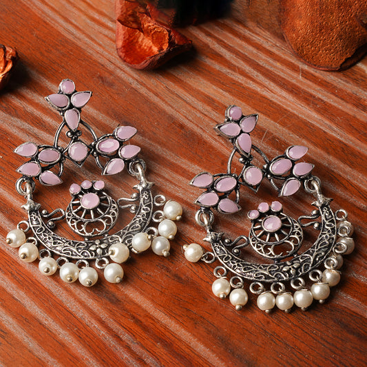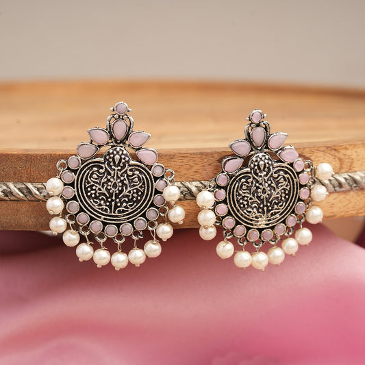 Baby Pink Stone Studded Statement German Silver Dangler Earrings