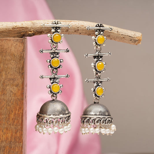 Royal Triple Bell Layered Jhumka Earring (Yellow)