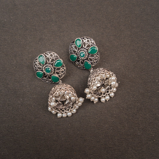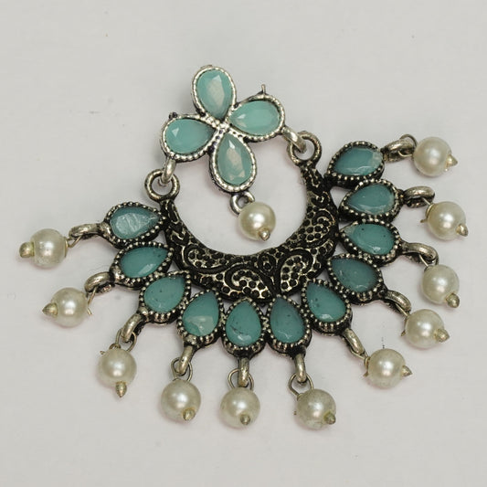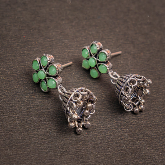 Mint Stone Studded Statement German Silver Dangler Earrings