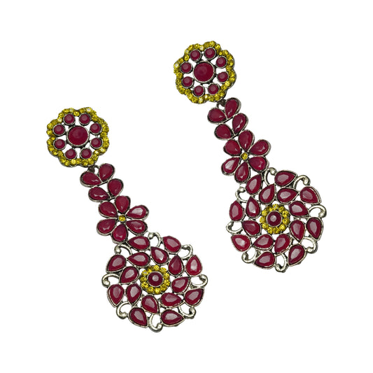 Blossom Cascade stone studded dangler earrings (Multicolored)
