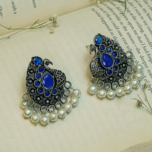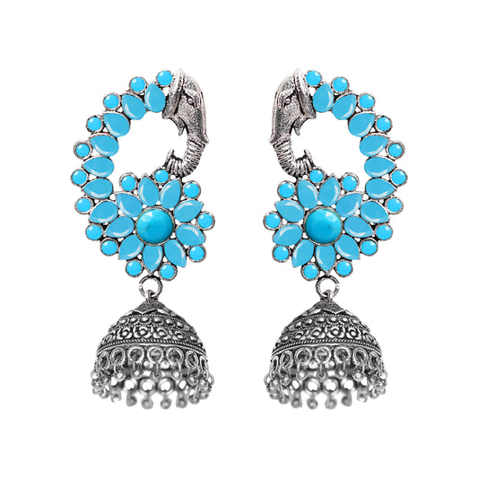 Tusks and twinkle stone studded jhumka earrings (Sky Blue)
