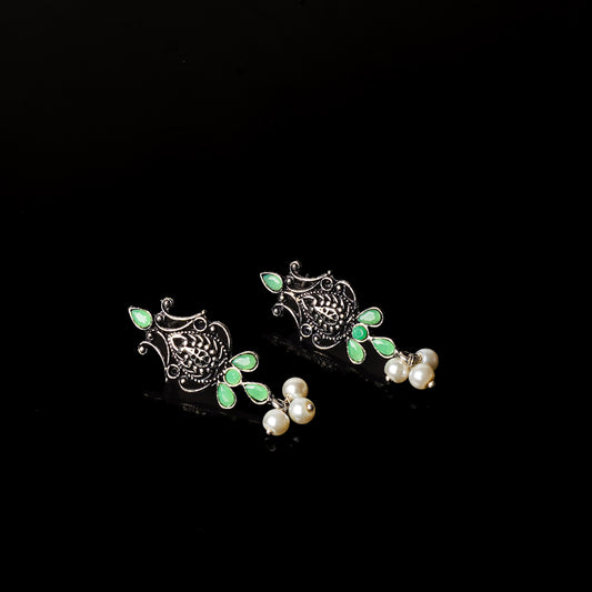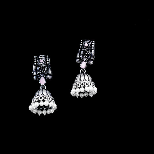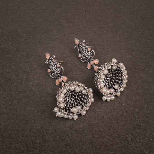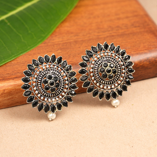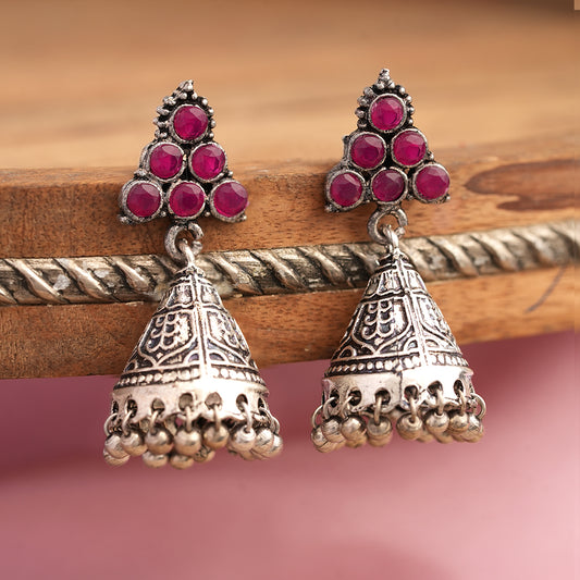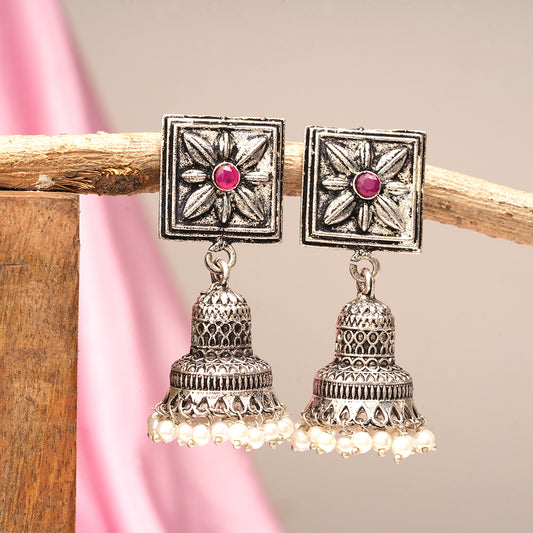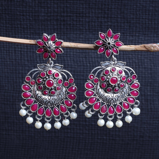 Wonderful wildflower oxidised stud earrings (Dark Red)