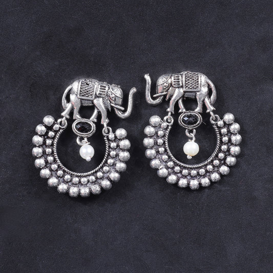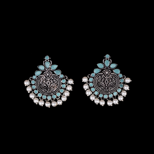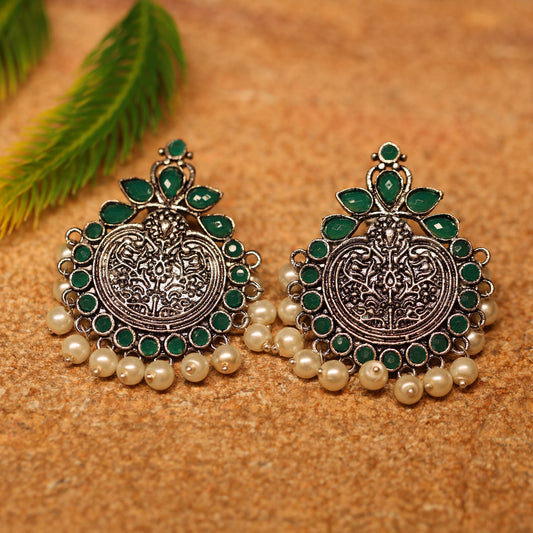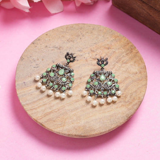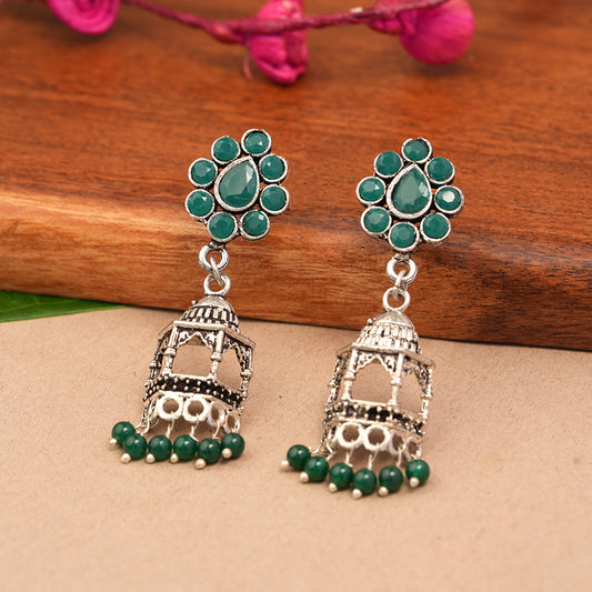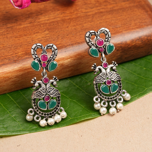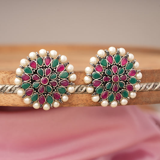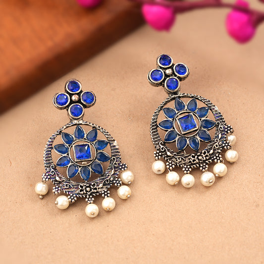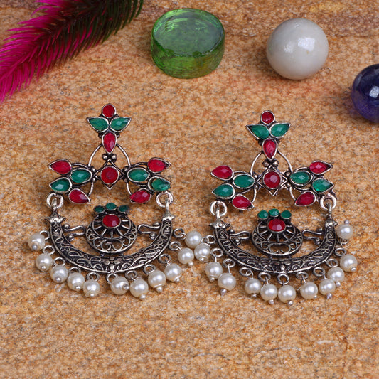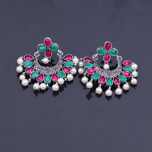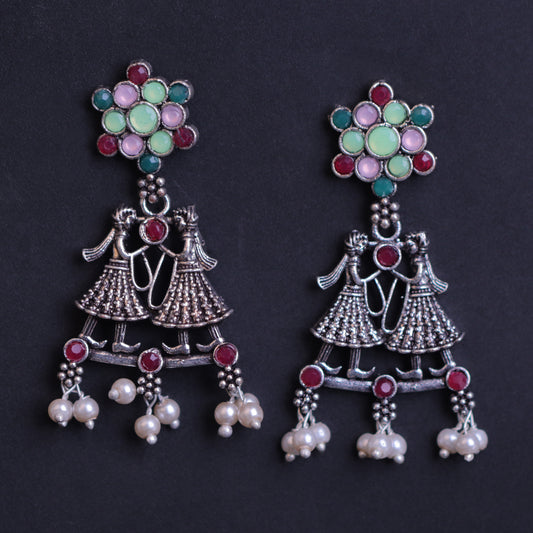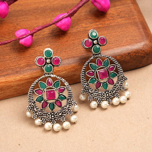 Multicolored Stone Studded Statement German Silver Dangler Earrings