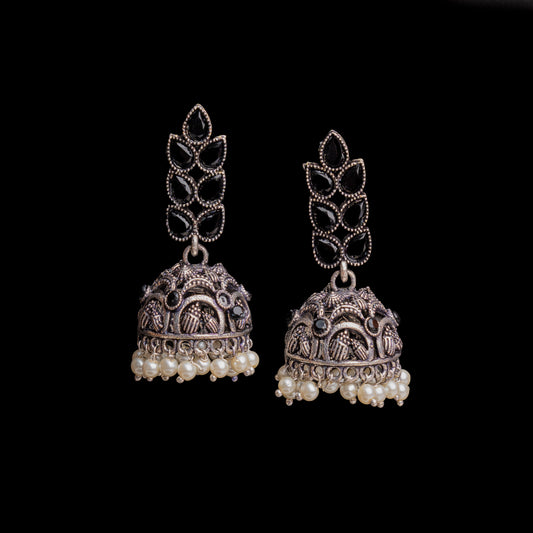 Royal Triple Bell Layered Jhumka Earring (Black)