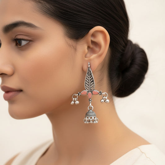Nature's embrace jhumki earrings (Baby Pink)