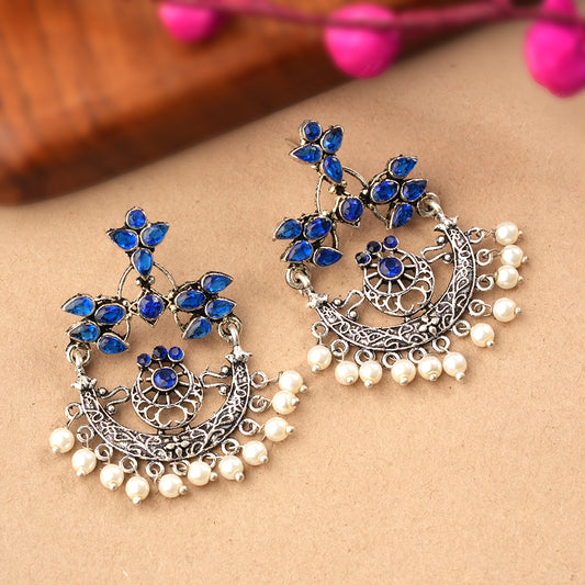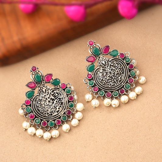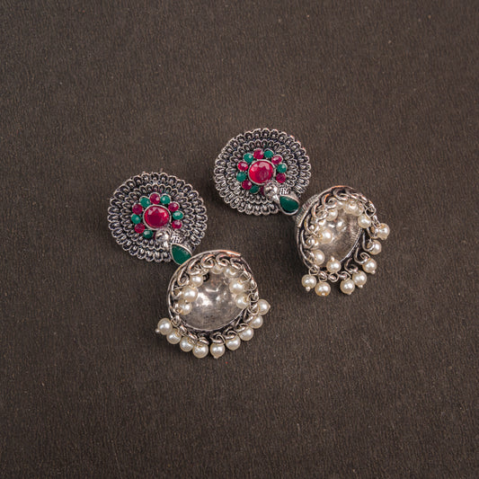 Flora-Aura stone studded dangler earrings (Multicolored)
