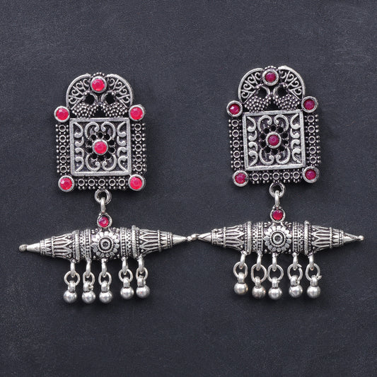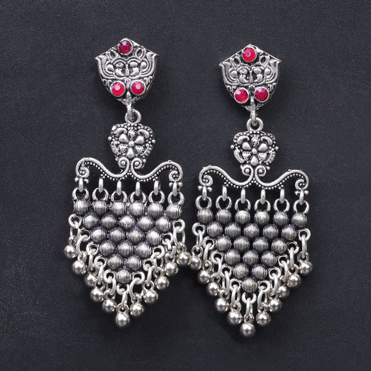Paisley Swirl Ghungroo jhumki earring (Red)