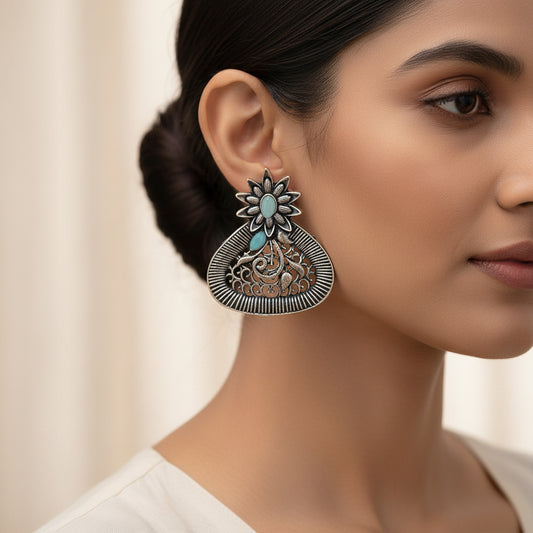 Wildflower oxidised stud earrings (Green)