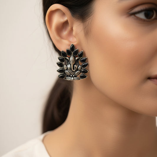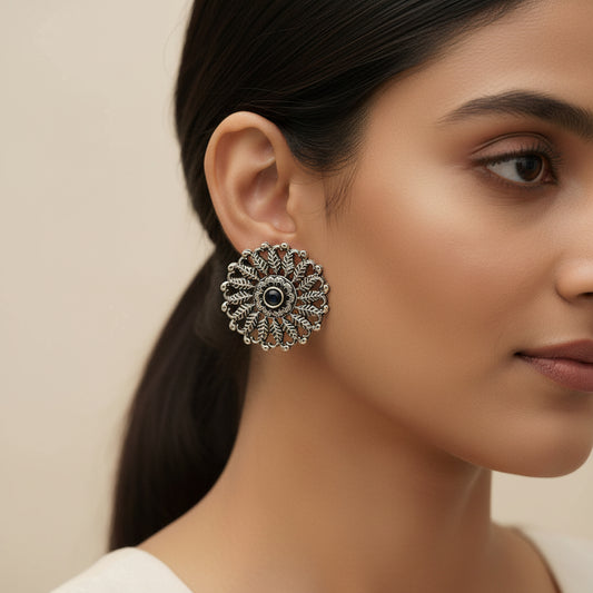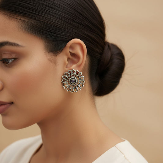 Wildflower oxidised stud earrings (Black)