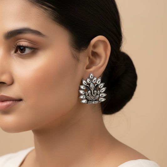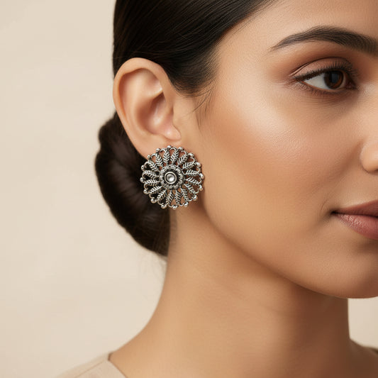 Wildflower oxidised stud earrings (White)