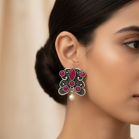 RadiantRays stone studded oxidised stud earrings (Red)