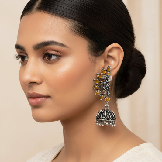 floraglam stone studded jhumki earrings (Yellow)