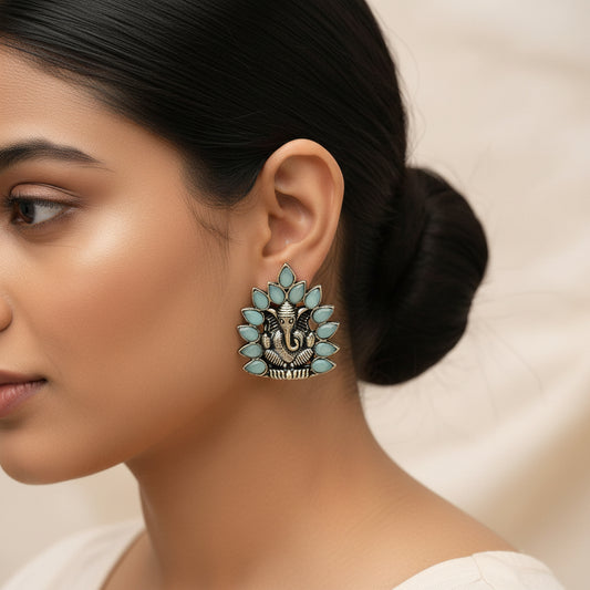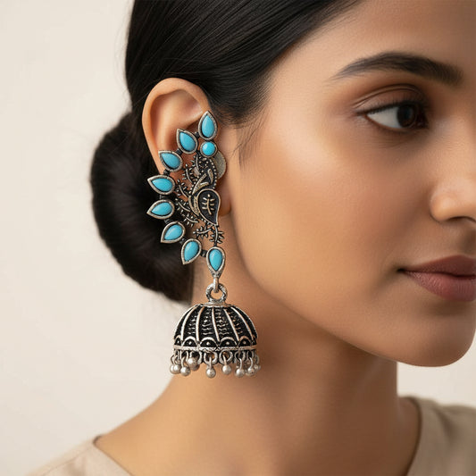 floraglam stone studded jhumki earrings (Skyblue)