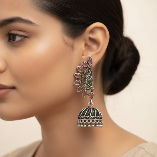 floraglam stone studded jhumki earrings (Red)