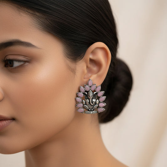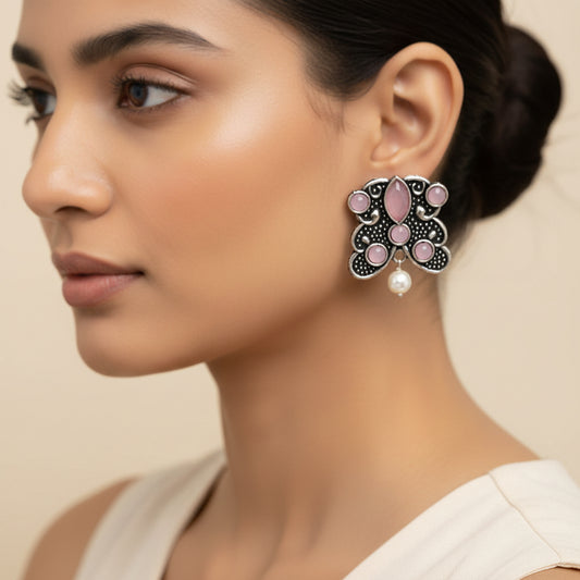 RadiantRays stone studded oxidised stud earrings (Baby Pink)