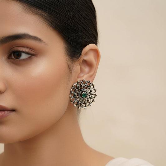 RadiantRays stone studded oxidised stud earrings (Green)