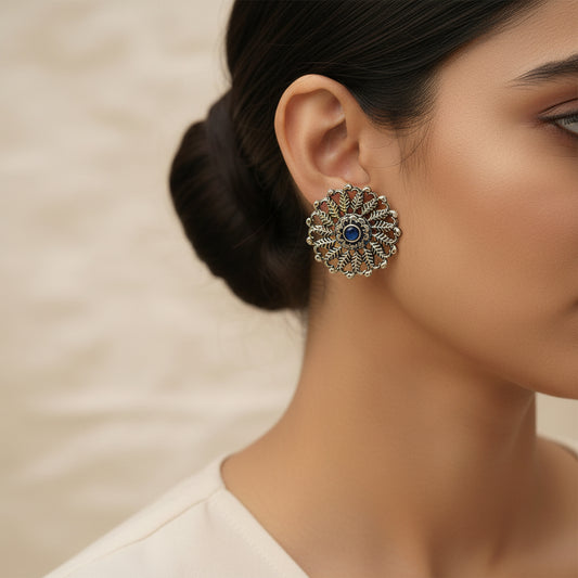 Wildflower oxidised stud earrings (Blue)