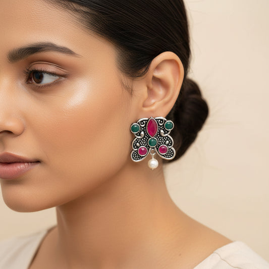 RadiantRays stone studded oxidised stud earrings (Multicoloured)
