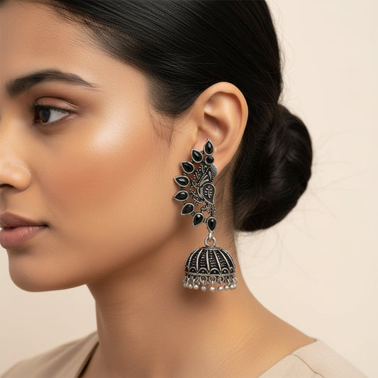 floraglam stone studded jhumki earrings (Black)