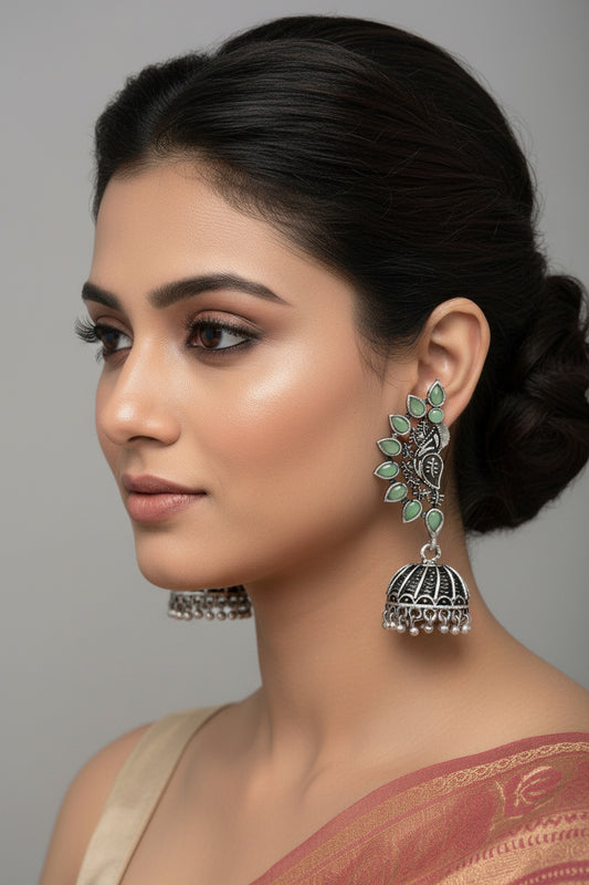 floraglam stone studded jhumki earrings (Pista)