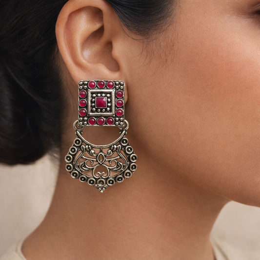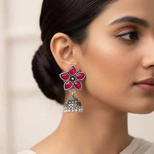 Beauty Bloom ghunghroo jhumki earring (Red)