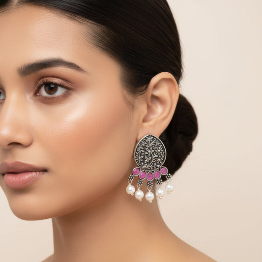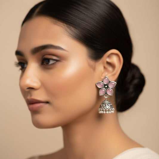 Beauty Bloom ghunghroo jhumki earring (Baby Pink)