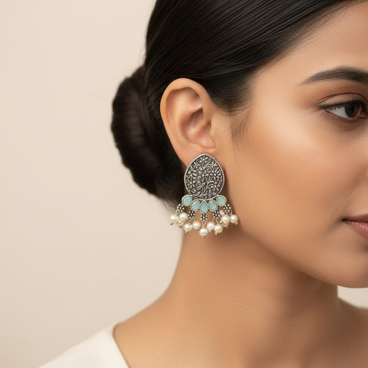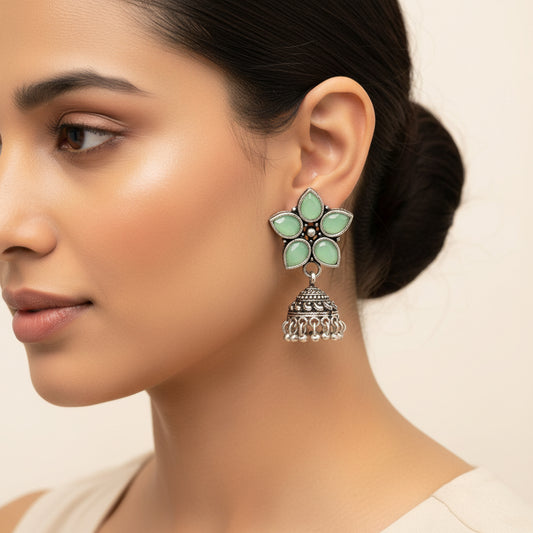 Beauty Bloom ghunghroo jhumki earring (Mint)