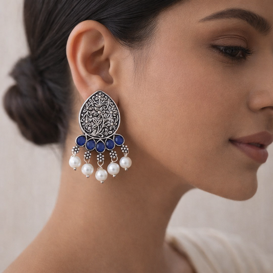 Beauty Bloom ghunghroo jhumki earring (Blue)