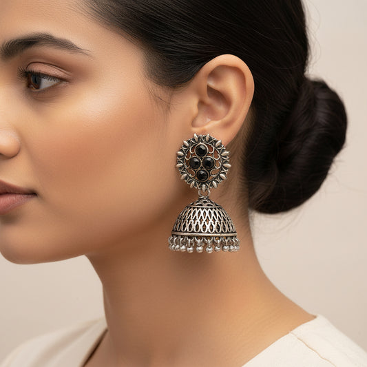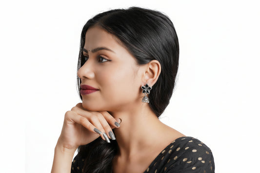 Beauty Bloom ghunghroo jhumki earring (Black)