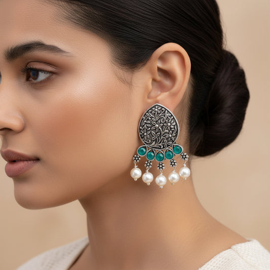 Beauty Bloom ghunghroo jhumki earring (Green)