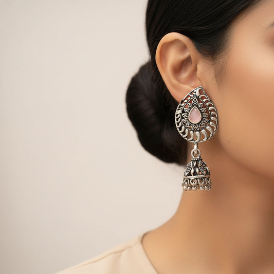 Classic chandlier Jhumka earrings (Baby Pink)