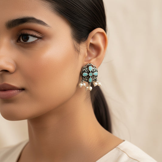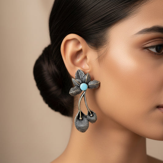 Bud Flower oxidized stud earrings (Sky Blue)