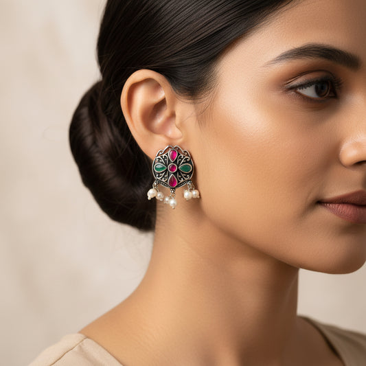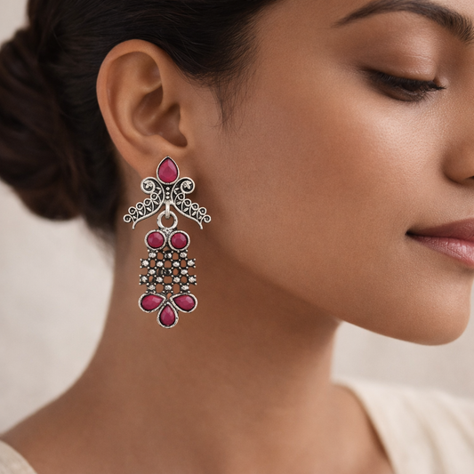 floral charm traditional jhumka earrings (Dark Maroon)